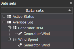 If the required data set is not created, you can create it and assign it to the controller by following the steps described earlier in this section in Status Log Configuration. Afterwards, you can proceed with the threshold configuration. For example, every 30 seconds we need to record values for the wind speed and generator speed (in rpm) into the Event Log. To be able to do this, follow the steps below: