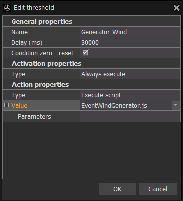 The other way of Status Log creation is when we want to generate appropriate status code based on the specified conditions, e.g. wind speed or power production is less than some value, etc. Therefore, we need to create a threshold and assign to it the condition of, for example, comparing the values which are lower than 300. To do this, follow the steps below: