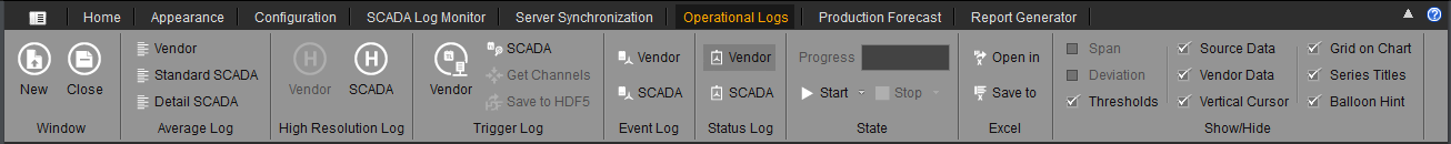 3. Next, click the Vendor or SCADA icon in the Status Log section on the main toolbar.