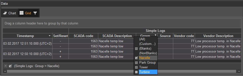 Therefore, in this way status code groups can be filtered in the corresponding Group column of the grid. All yo need is to select the check-box next to the required group name and data in the grid will be filtered accordingly.